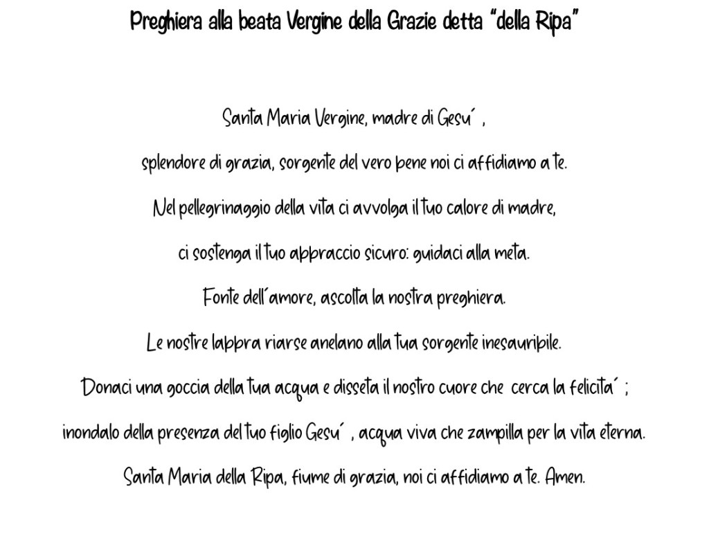 L’immagine, chiamata Madonna della Ripa perché, nei primi decenni del 1400 era dipinta sul muro del Molino della Ripa, era venerata dal popolo perché rimasta miracolosamente illesa in una straordinaria inondazione del fiume Schietta. I forlivesi, nel 1495, vollero metterla al riparo dall’erosione del tempo affidandola alle cure e alla venerazione delle Clarisse del grande monastero della Ripa. Qui rimase per oltre tre secoli.